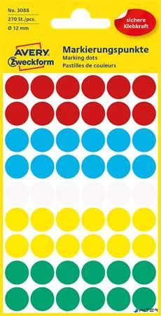 Etikett, 12 mm, kör, AVERY ZWECKFORM, 5 különböző szín, 270 etikett/csomag