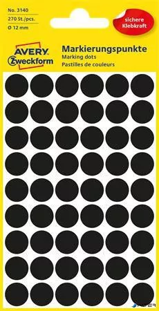 Etikett, 12 mm, kör, AVERY ZWECKFORM, fekete, 270 etikett/csomag
