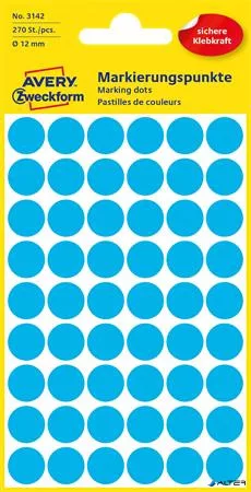 Etikett, 12 mm, kör, AVERY ZWECKFORM, kék, 270 etikett/csomag