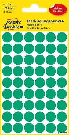 Etikett, 12 mm, kör, AVERY ZWECKFORM, zöld, 270 etikett/csomag