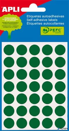 Etikett, 13 mm kör, kézzel írható, színes, APLI, zöld 175 etikett/csomag