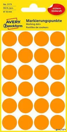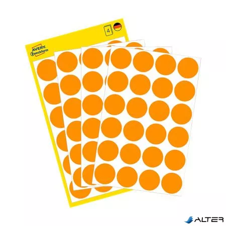 Etikett, 18 mm, kör, AVERY ZWECKFORM, neon narancs, 96 etikett/csomag