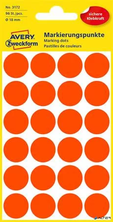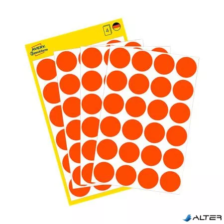 Etikett, 18 mm, kör, AVERY ZWECKFORM, neon piros, 96 etikett/csomag