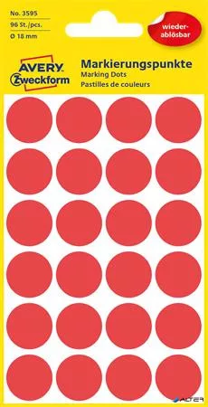 Etikett, 18 mm, kör, eltávolítható, AVERY ZWECKFORM, piros, 96 etikett/csomag