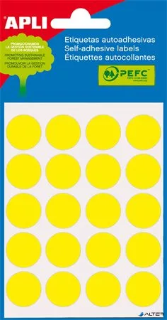 Etikett, 19 mm kör, kézzel írható, színes, APLI, sárga, 100 etikett/csomag