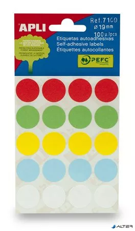Etikett, 19 mm kör, kézzel írható, színes, APLI, vegyes színek, 100 etikett/csomag