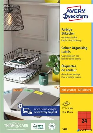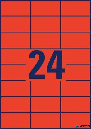 Etikett, 70x37 mm, színes, AVERY ZWECKFORM, piros, 2400 etikett/csomag