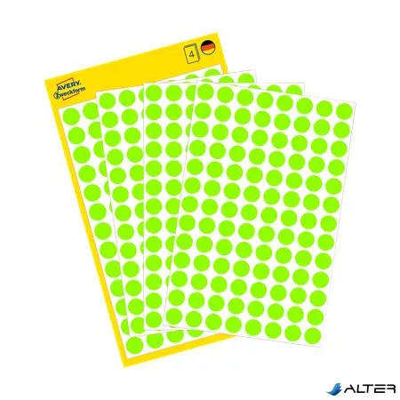 Etikett, 8 mm, kör, AVERY ZWECKFORM, neon zöld, 416 etikett/csomag