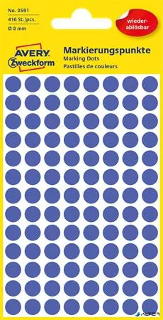 Etikett, 8 mm, kör, eltávolítható, AVERY ZWECKFORM, indigókék, 416 etikett/csomag