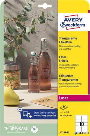 Etikett, 96x50,8 mm, poliészter, AVERY ZWECKFORM, átlátszó, 250 etikett/csomag