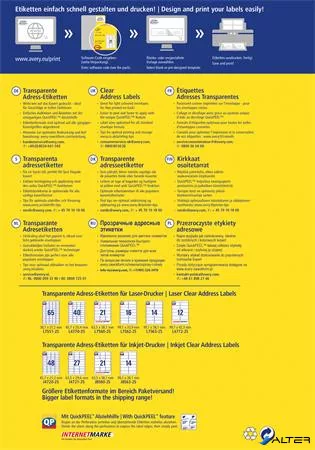 Etikett, 99,1x42,3 mm, poliészter, AVERY ZWECKFORM, átlátszó, 300 etikett/csomag