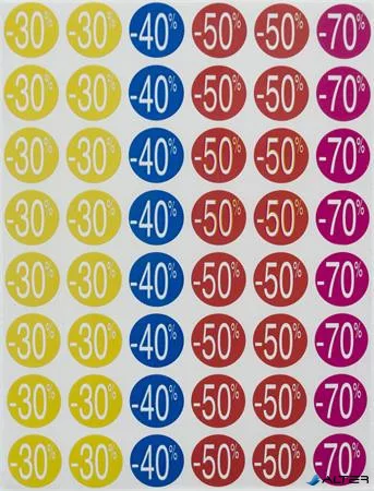 Etikett, árengedmény, 24 mm, kör, színes, APLI, 240 etikett/csomag, -20-50%
