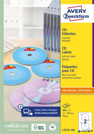 Etikett, CD/DVD, 117 mm, AVERY ZWECKFORM, 200 etikett/csomag