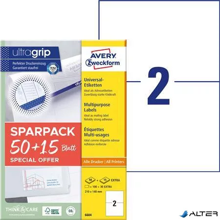 Etikett, univerzális, 210x148 mm, AVERY ZWECKFORM, 'Sparpack', 130 etikett/csomag