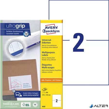 Etikett, univerzális, 210x148 mm, AVERY ZWECKFORM, 200 etikett/csomag