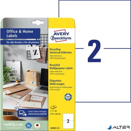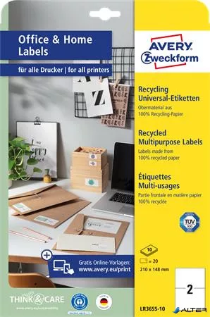 Etikett, univerzális, 210x148 mm, újrahasznosított, AVERY ZWECKFORM, 20 etikett/csomag