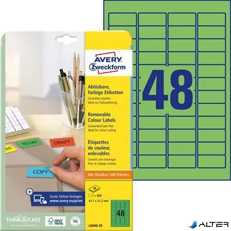 Etikett, univerzális, 45,7x21,2 mm, eltávolítható, kerekített sarkú, AVERY ZWECKFORM, 960 etikett/csomag, zöld