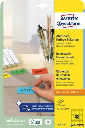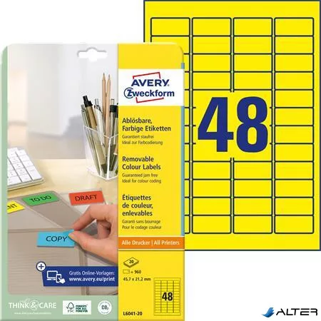 Etikett, univerzális, 45,7x21,2 mm, eltávolítható, kerekített sarkú, AVERY ZWECKFORM, 960 etikett/csomag, sárga