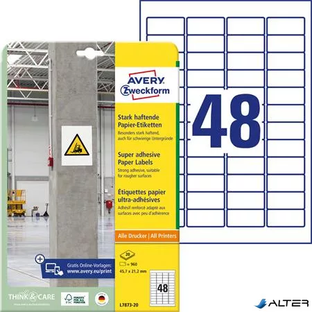 Etikett, univerzális, 45,7x21,2 mm, extra erős, AVERY ZWECKFORM, 960 etikett/csomag