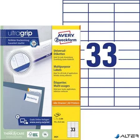 Etikett, univerzális, 70x25,4 mm, AVERY ZWECKFORM, 3300 etikett/csomag