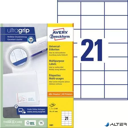 Etikett, univerzális, 70x41 mm, AVERY ZWECKFORM, 2100 etikett/csomag