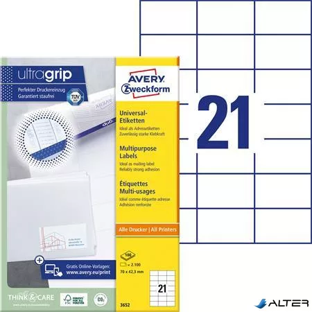 Etikett, univerzális, 70x42,3 mm, AVERY ZWECKFORM, 2100 etikett/csomag
