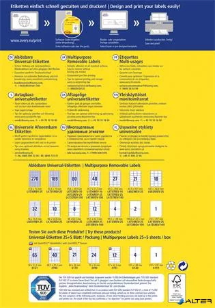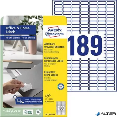 Etikett, univerzális, eltávolítható, 25,4x10 mm, AVERY ZWECKFORM, 1890 etikett/csomag