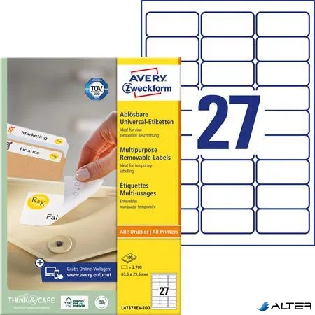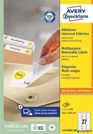 Etikett, univerzális, eltávolítható, 63,5x29,6 mm, AVERY ZWECKFORM, 2700 etikett/csomag