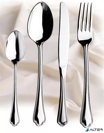 A szett tartalm: 6db Kanál, 6db Villa, 6db Kés, 6db Teás-, Kávéskanál.