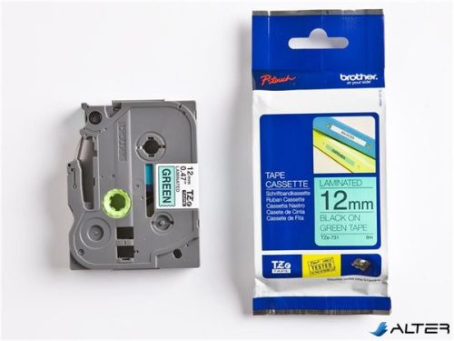 Feliratozógép szalag, 12 mm x 8 m, BROTHER, "TZe-731" zöld-fekete