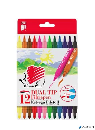Filctoll készlet, 1/3 mm, kétvégű, ICO "Süni 300 DUO", 12 különböző szín
