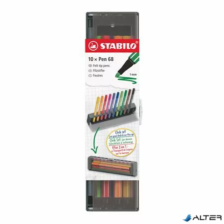 Filctoll készlet, 1 mm, STABILO "Pen 68", 10 db-os asztali készlet