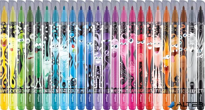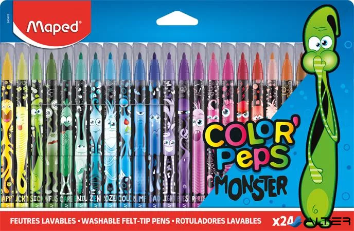 Filctoll készlet, 2,8 mm, kimosható, MAPED "Color'Peps Monster" 24 különböző szín
