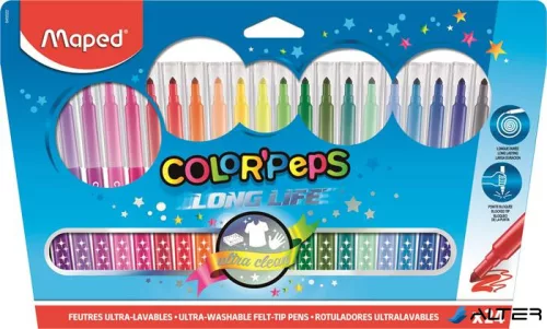 Filctoll készlet, mosható, MAPED "Color'Peps Long Life", 24 különböző szín
