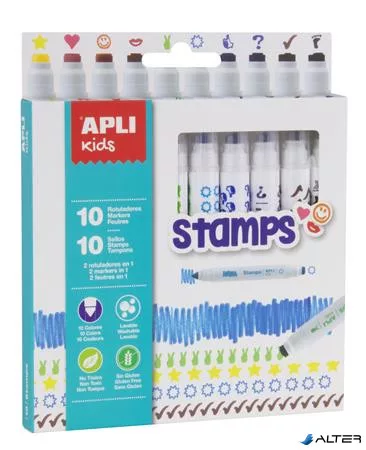 Filctoll készlet, nyomda, APLI Kids 'Markers Duo Stamps', 10 különböző szín és minta