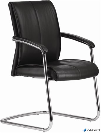 Főnöki tárgyalószék, fekete bőr, krómozott szánkótalppal, 'Chicago '