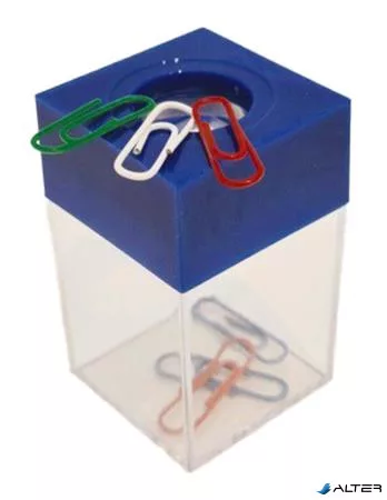 Átlátszó testű gemkapocstartó mágneses fedéllel.