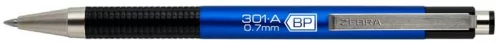 Golyóstoll, 0,24 mm, nyomógombos, kék tolltest, ZEBRA "F-301 A", kék