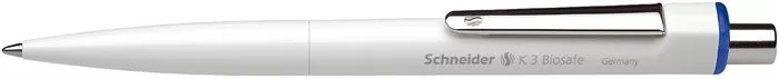 Golyóstoll, 0,5 mm, nyomógombos, SCHNEIDER 'K3 Biosafe', kék