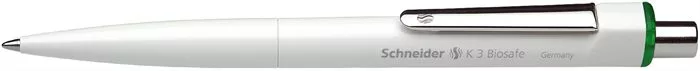 Golyóstoll, 0,5 mm, nyomógombos, SCHNEIDER 'K3 Biosafe', zöld