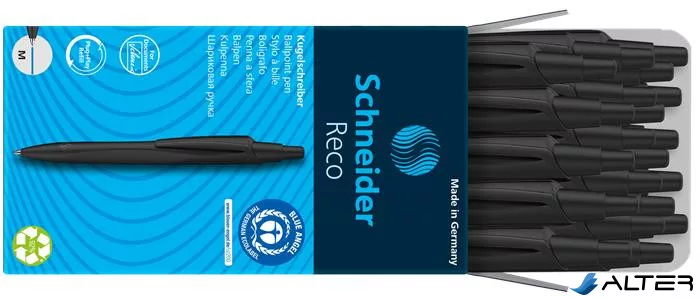 Golyóstoll, 0,5 mm, nyomógombos, fekete színű tolltest, SCHNEIDER "Reco", kék