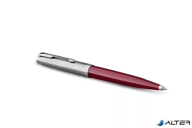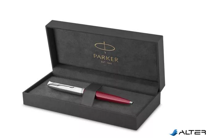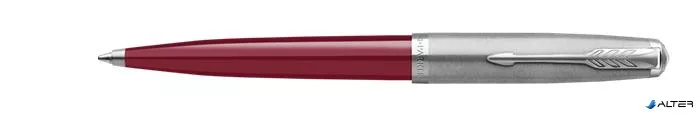 Golyóstoll, 0,7 mm rotációs, ezüst színű klip, piros tolltest, PARKER 'Royal 51 Core', fekete