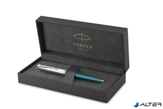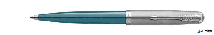 Golyóstoll, 0,7 mm rotációs, ezüst színű klip, türkiz tolltest, PARKER 'Royal 51 Core', fekete