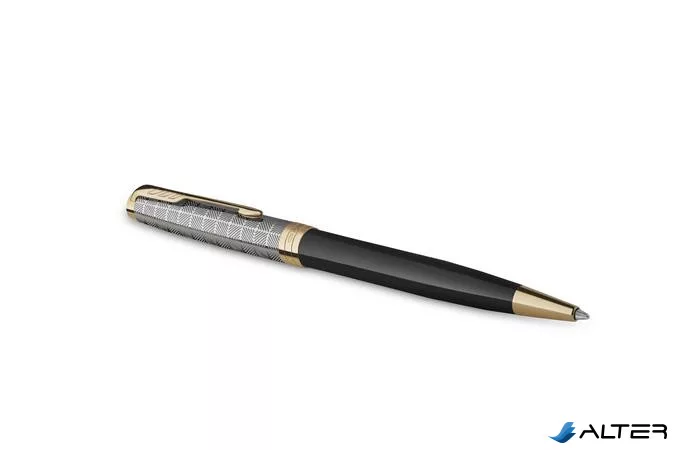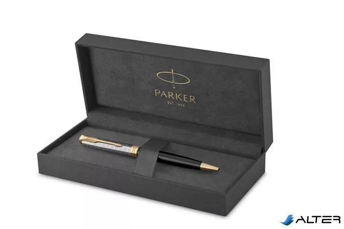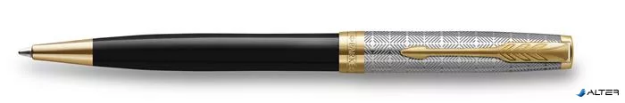 Golyóstoll, 1 mm, metál fekete tolltest, arany klip, PARKER "Royal Sonnet Premium", fekete