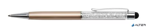 Golyóstoll, arany, felül fehér SWAROVSKI® kristállyal töltve, érintővel, 14 cm, ART CRYSTELLA®