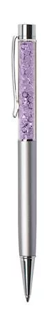 Golyóstoll, ezüst, felül orgonalila SWAROVSKI® kristállyal töltve, 14 cm, ART CRYSTELLA®
