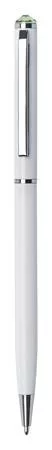 Golyóstoll, fehér "SLIM", peridot zöld SWAROVSKI® kristállyal, 13 cm, ART CRYSTELLA®