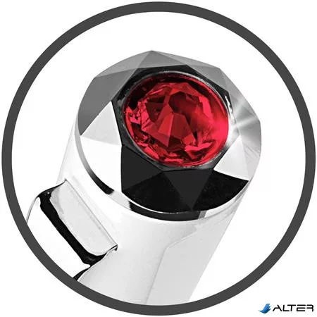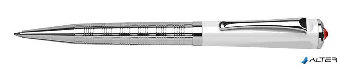 Golyóstoll, fehér-ezüst 'Rialto', light siam piros SWAROVSKI® kristállyal, 14cm, ART CRYSTELLA®