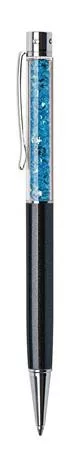 Golyóstoll, fekete, felül aquakék SWAROVSKI® kristállyal töltve, 14 cm, ART CRYSTELLA®