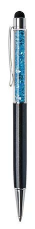 Golyóstoll, fekete, felül aquakék SWAROVSKI® kristállyal töltve, érintővel, 14 cm, ART CRYSTELLA®